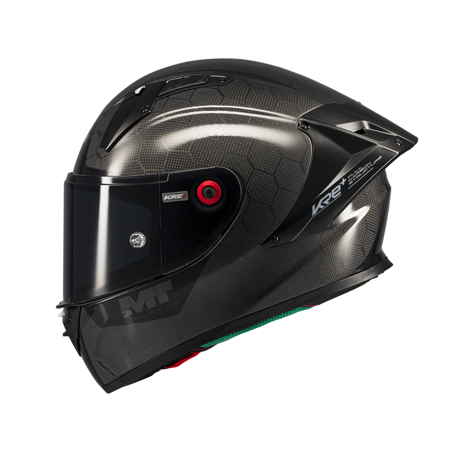 El MT KRE+ S es un casco 100% deportivo fabricado en fibra de carbono y con homologación FIM, lo que le permite competir en cualquier competición internacional.
